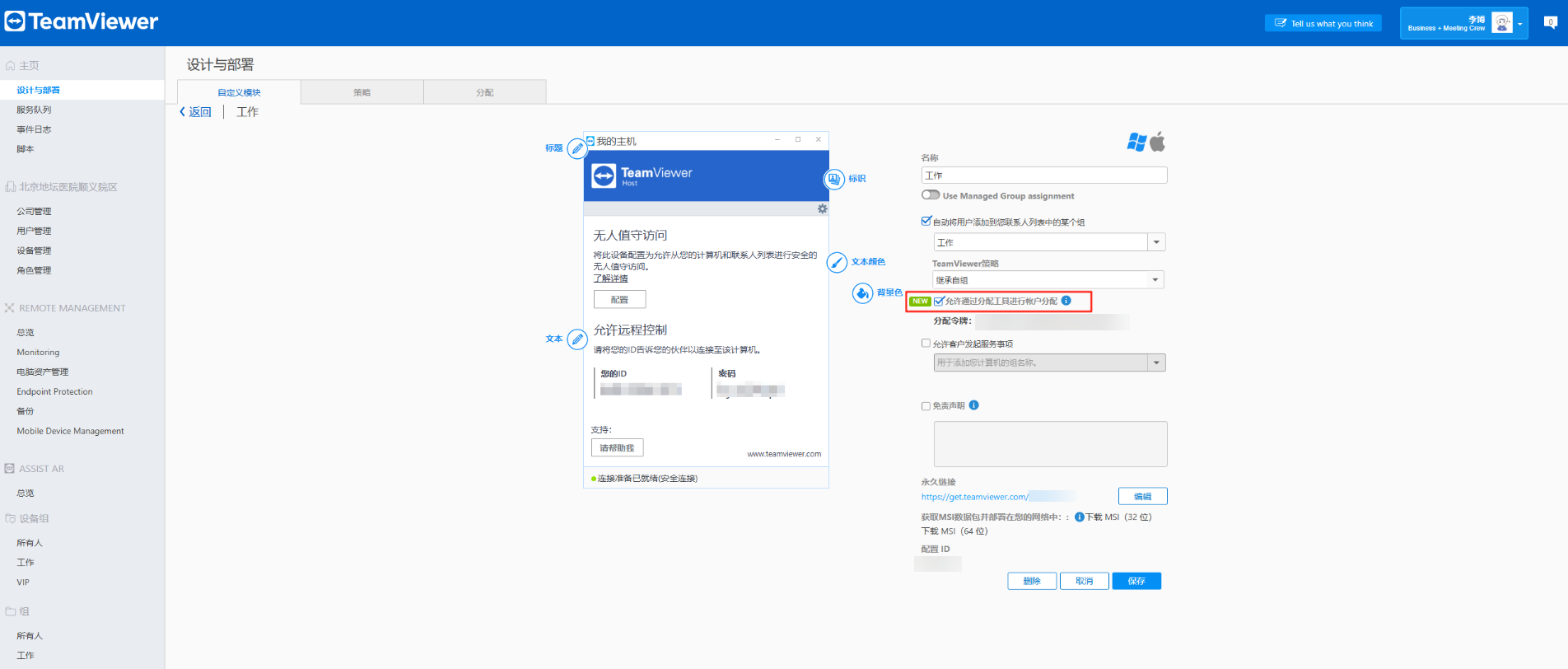 或者请您尝试在 TeamViewer 客户端进行 Host 设置。新的设置方法带来更简易的操作,更多详细步骤,请您查看 - 通过链接分配设备
