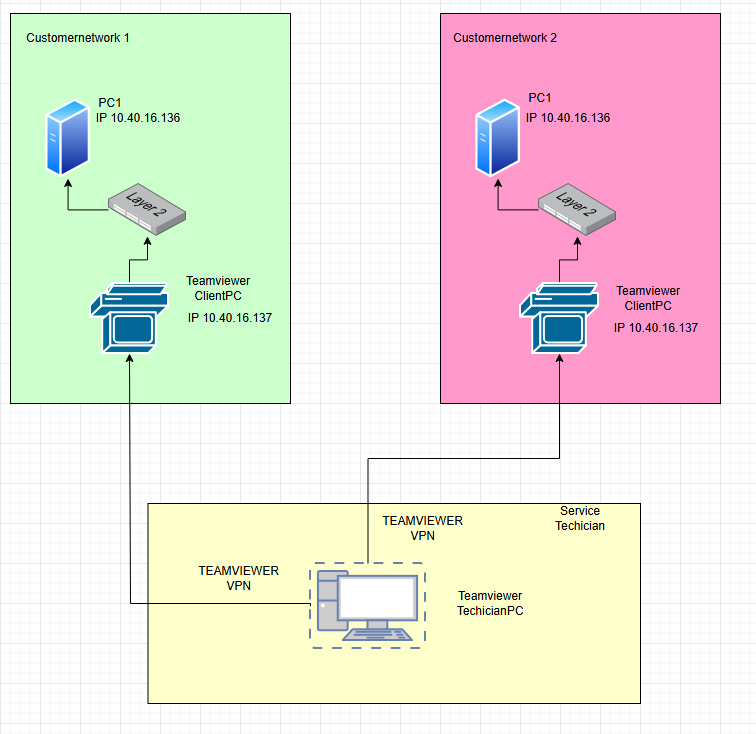 - Service Technician: connects via TeamViewer / TeamViewer VPN