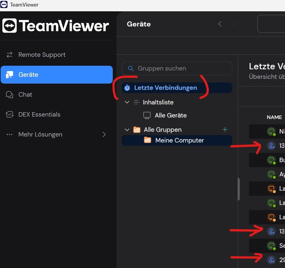 Ich möchte einmalige Verbindung aus der Liste „Letzte Verbindungen“ entfernen, siehe bitte Screenshot.