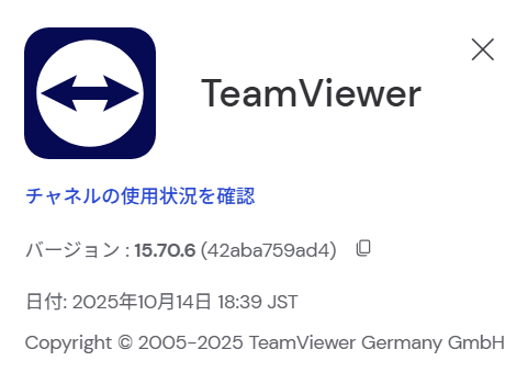 PC の OS は Windows11 で、TeamViewer は以下のバージョンのものを使用しています。