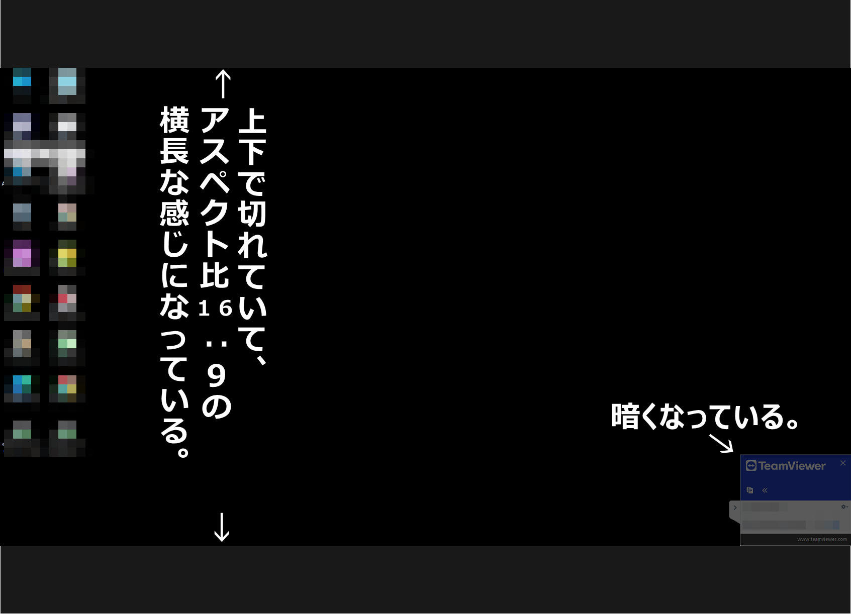 職場のPCを更新しWindows10から11になり、TeamViewerフルクライアントも再インストールして何とか使えるようになったのですが、ブラックスクリーンにした際の画面で以前と違う部分があり、下記を質問します。