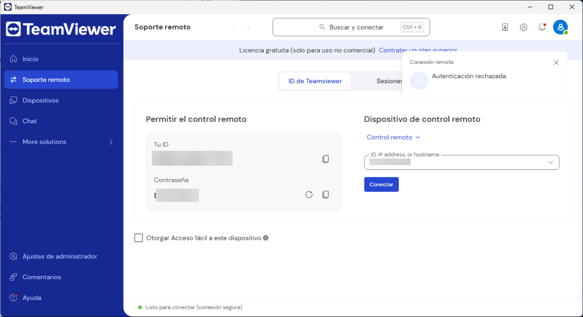 se conecta solo cuando le doy a conectar y después me sale una ventana emergente con el rechazo de la conexión.