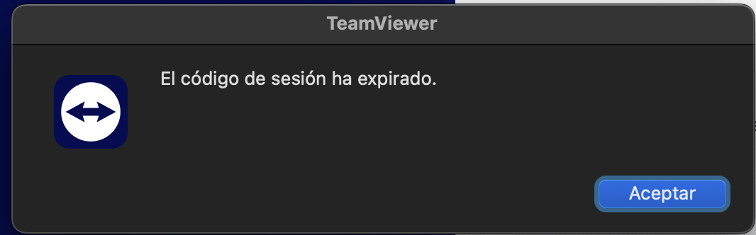 Este mensaje te aparece porque los códigos de sesión tienen una validez de 24 horas. Al crear el código te aparecerá el tiempo de duración, como se aprecia en la imagen a continuación: